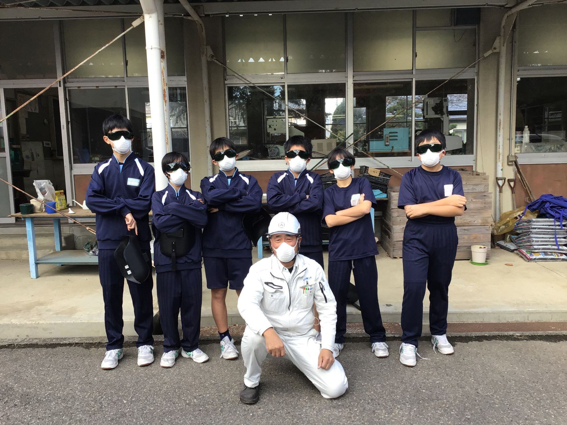 溶接体験では、安全を最優先に考え、保護メガネを着用してもらいました。毎年この保護メガネは生徒たちに大変好評です。